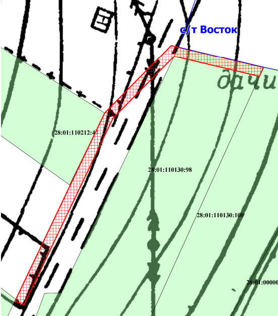 1) части земельного учаска с кадастровым номером 28:01:110130:98, расположенного районе коллективных садов;