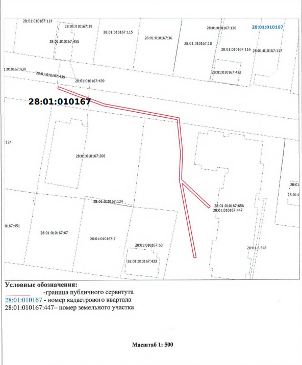 1. земельного участка с кадастровым номером 28:01:010167:447, расположенного по ул. Свободная, 197, в квартале 167;