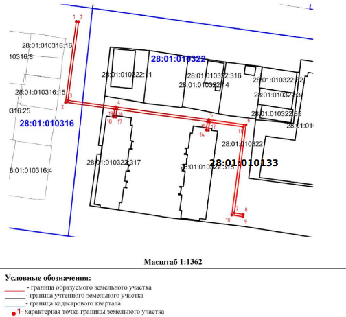 2) земель, расположенных в кадастровых кварталах: 28:01:010322, 28:01:010316.