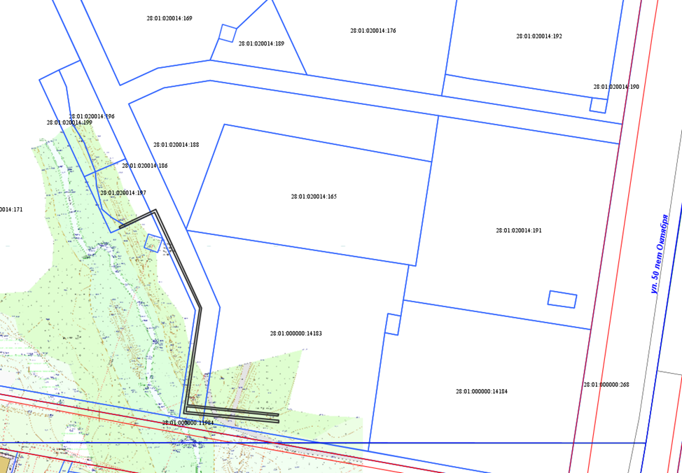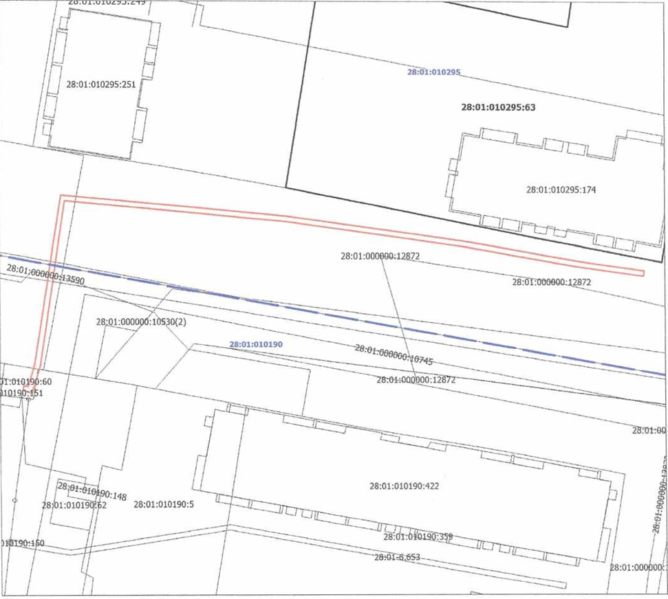 Федерации администрация города Благовещенска информирует о рассмотрении ходатайства ООО «АКС» об установлении публичного сервитута для размещения сети водоотведения в отношении: