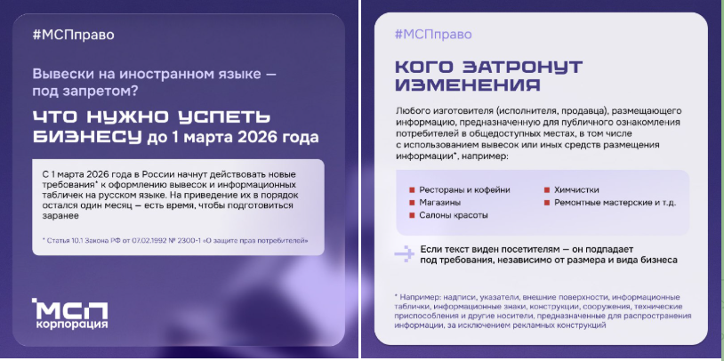 Вывески на русском языке — новые требования с 1 марта 2026 года